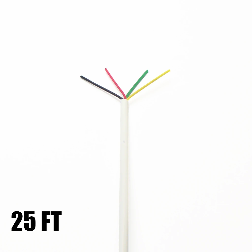 25 ft. 22 guage, 4 conductor solid copper wire for four wire type alarm sensor connections such as motions, glassbreaks and keypads. May be used for other low voltage connections as well. Note: May be used for two wire type sensors as well if you wish to only purchase one type of wire.