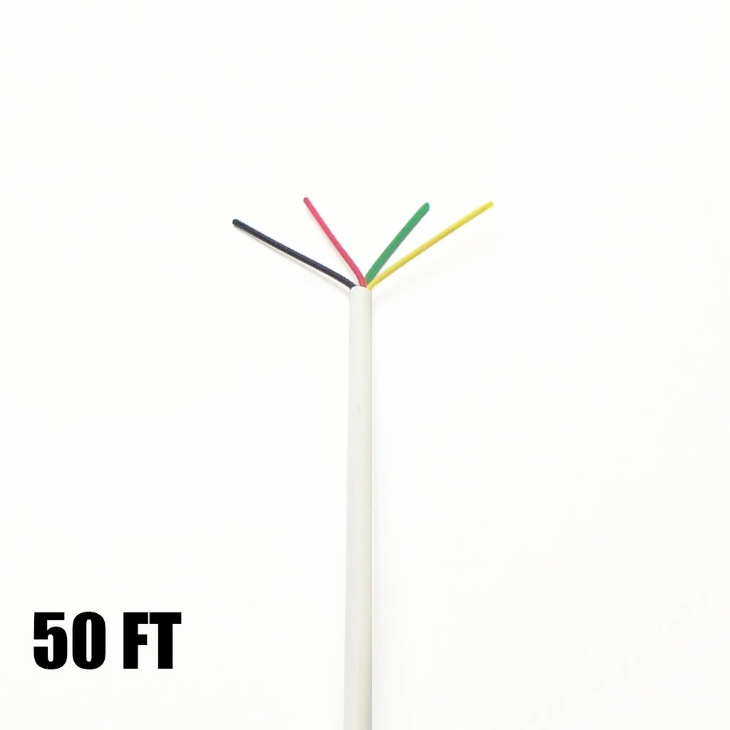 50 ft. 22 guage, 4 conductor solid copper wire for four wire type alarm sensor connections such as motions, glassbreaks and keypads. May be used for other low voltage connections as well. Note: May be used for two wire type sensors as well if you wish to only purchase one type of wire.