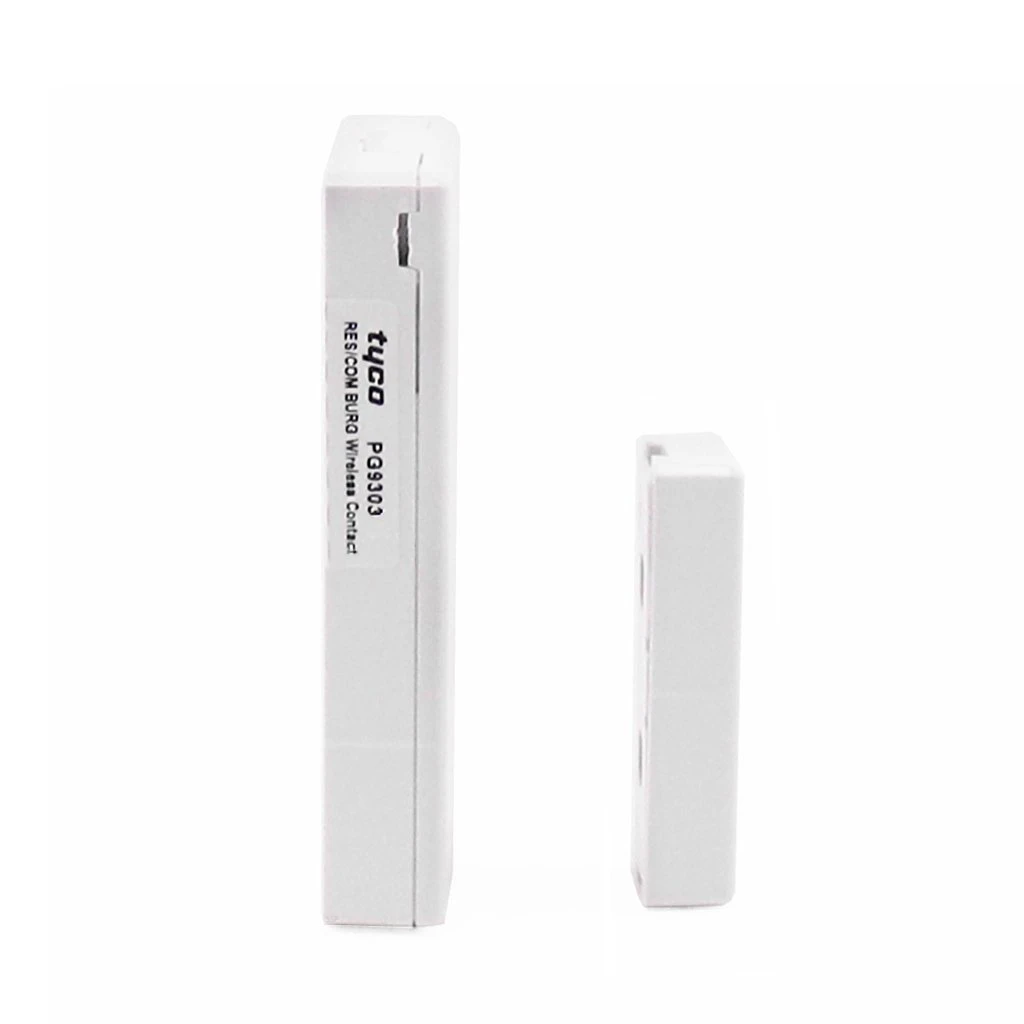 The PG9303 transmitter measures in at 2.6 x 1.2 x 0.4 inches. The magnet is 1.5 x .5 x 5/16 thick. This is an updated version of the now-discontinued PG9975 model. The 9303 wireless PowerG door/window contact is not as big and blocky as the PG9945 and is fast becoming one of our most popular Power G wireless sensors. The PG9303 is durable in design yet not as noticeable as the PG9945. This wireless transmitter features a built-in visual signal quality indicator so you can tell whether or not it will work in the space you are installing it into.Â