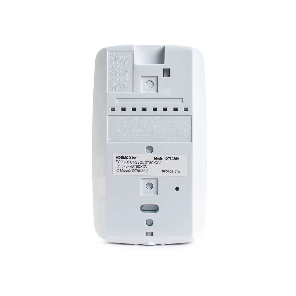 The Honeywell DT8035V is the new version, and replacement, of the DT7435 Dual Tech Motion sensor. This newer model is easy to install and will help reduce the installation time. This features dual technology with built-in Fresnel optics, a look down screen, cover and wall tampers and selectable pet immunity.