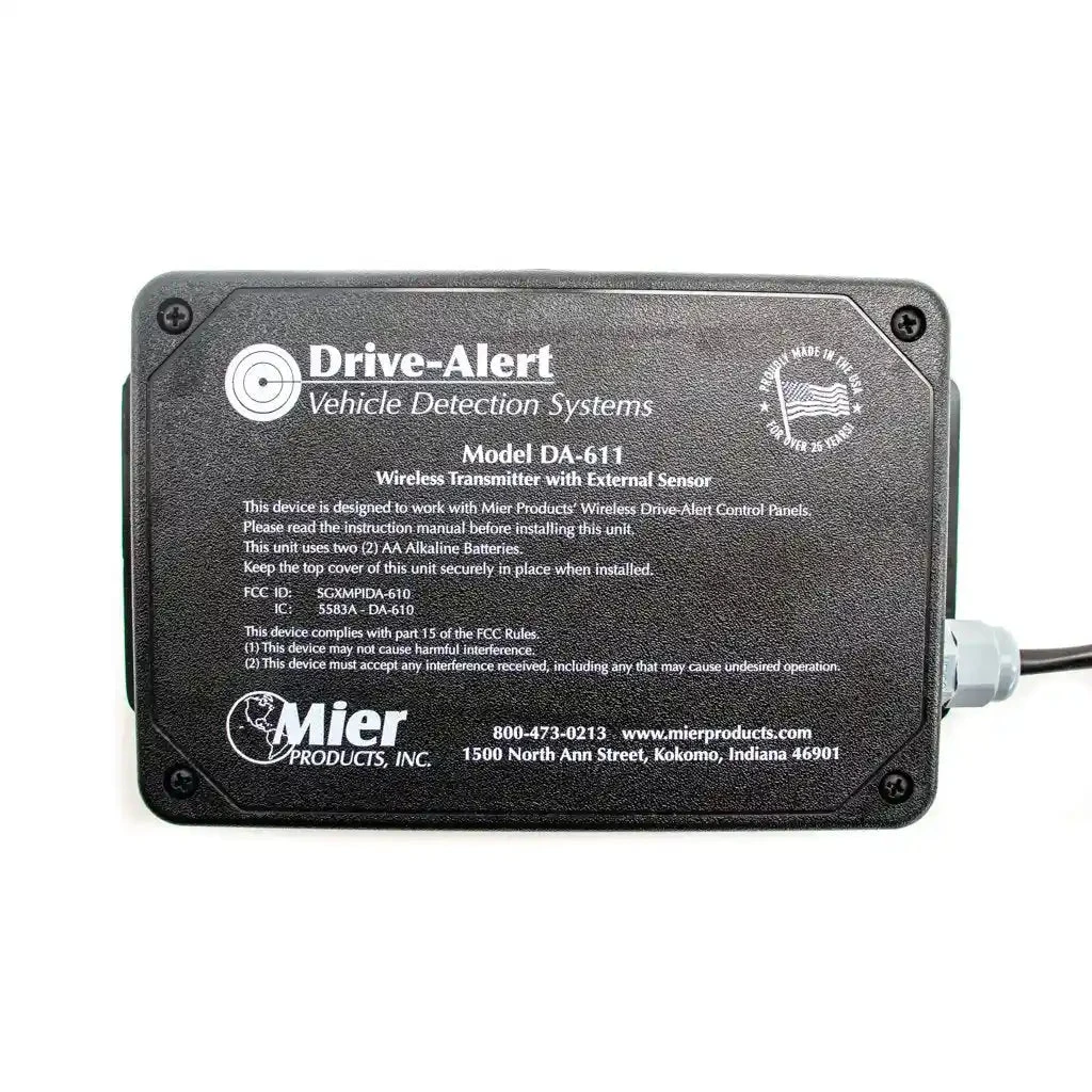 The DA-100 driveway alert kit is great to use for your home or you can use it for a business with a drive-up window such as a restaurant, drive-up liquor store, bank or any other number of businesses that have a drive-thru. These are perfect for notifying you of any vehicular presence on your property. They work differently from the Mier DA-500 Drive Alert control panel in the fact that you don’t have to run a wire from the probe unit all the way back to the building that contains the receiver/notifier unit. This works totally wirelessly between the transmitter and receiver. You will get a standard range of 500′ if the transmitter unit is on the ground. If you mount this on a pole that is 3′ or higher then you’ll get the full 1000′ range. You can also buy DA-REPEATER for these for extreme cases where you would need to transmit more than 1000′.